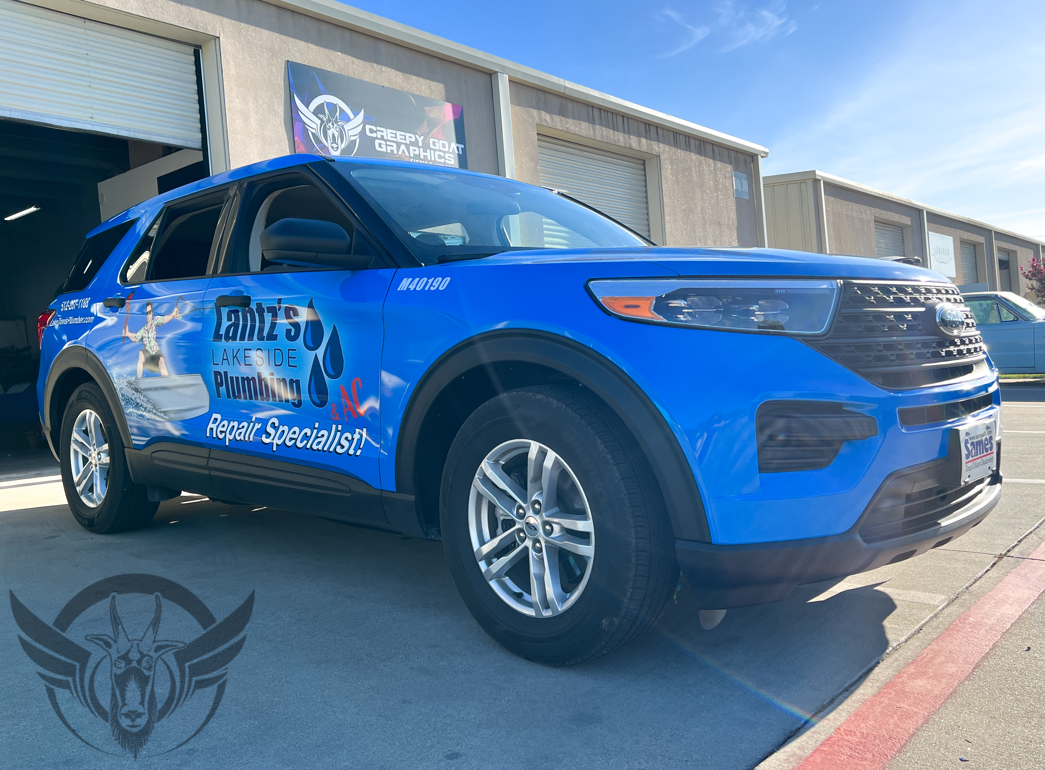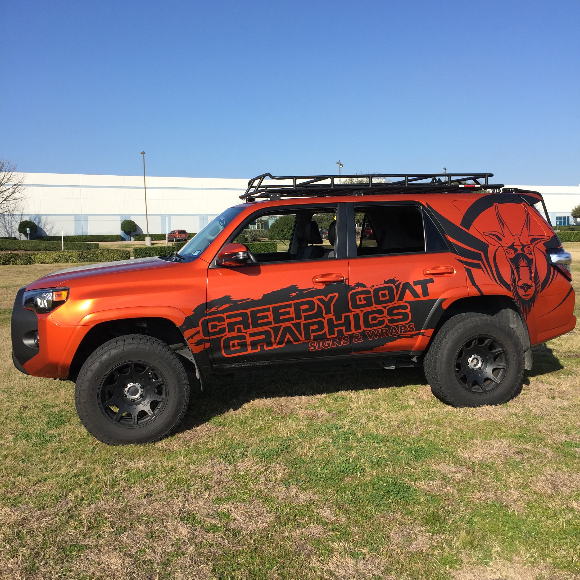Looking to build brand awareness for your business? Turn your fleet vehicles into rolling billboards! Vehicle advertising can generate 30,000-70,000 impressions a day. We offer a wide range of options, including full to partial wraps, window graphics, removable/placable magnetic decals, and decal lettering. Stand out with a full vehicle wrap or graphics by Creepy Goat Graphics. We deliver powerful design and outstanding installation.